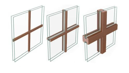 Drugim wariantem są szprosy konstrukcyjne wykonywane z tego samego materiału, co okno. Fizycznie dzielą kwaterę na podobnej zasadzie, co słupki lub poprzeczki. W takim wykonaniu okno posiada kilka osobnych wkładów szybowych.