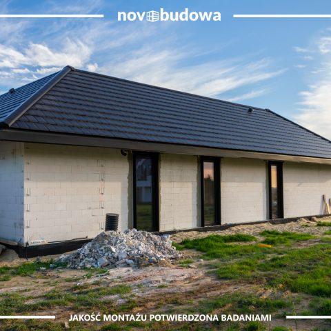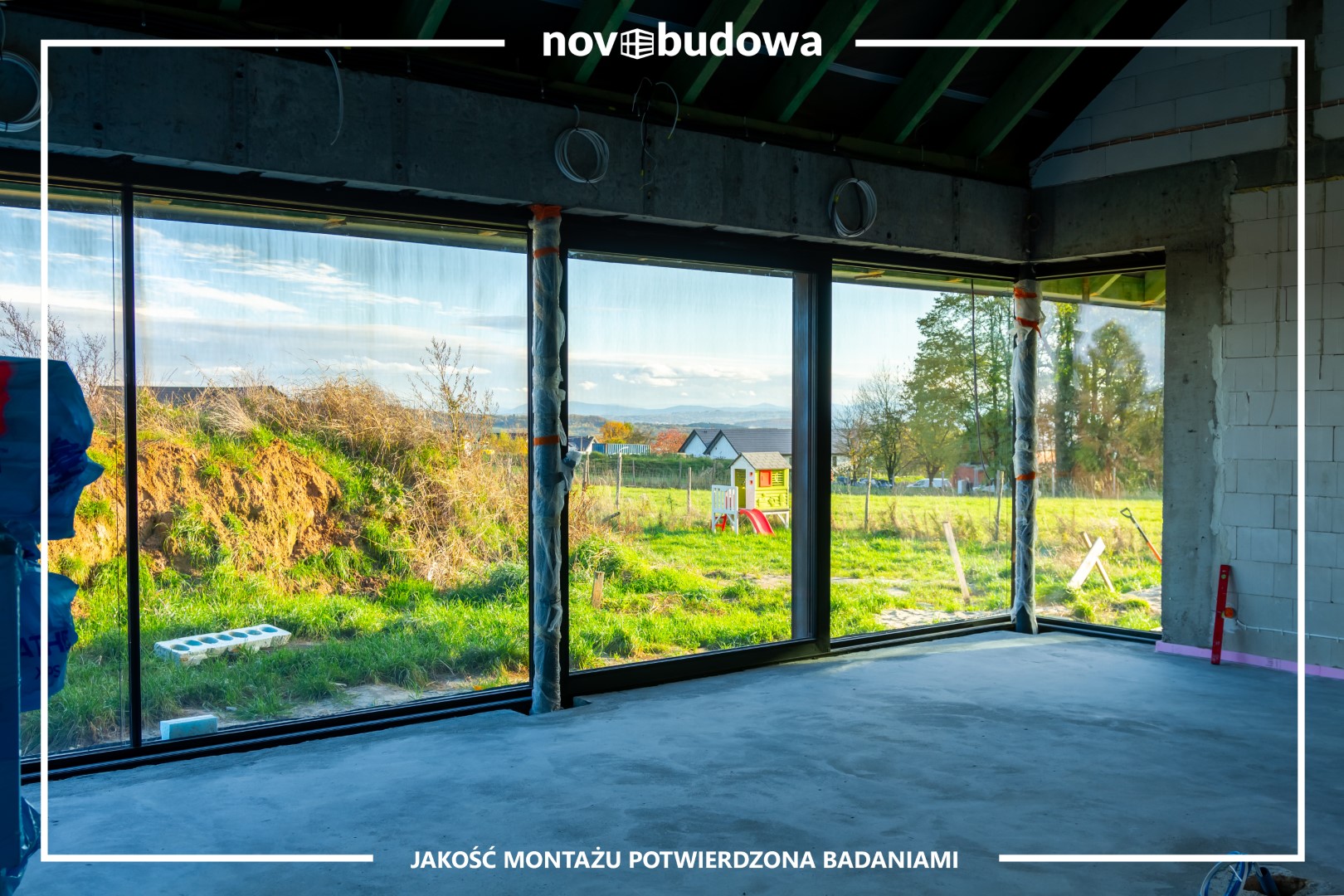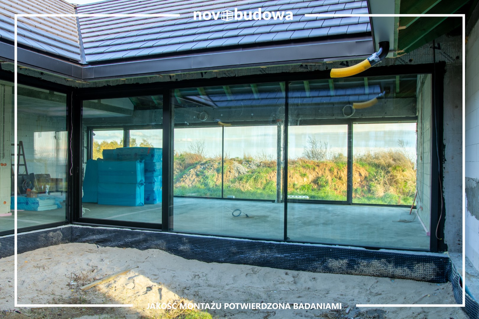 Dom parterowy z wielkoformatową witryną aluminiową + HST alu