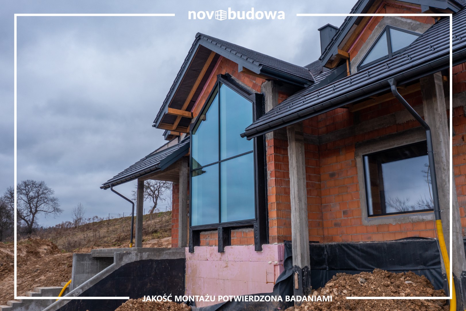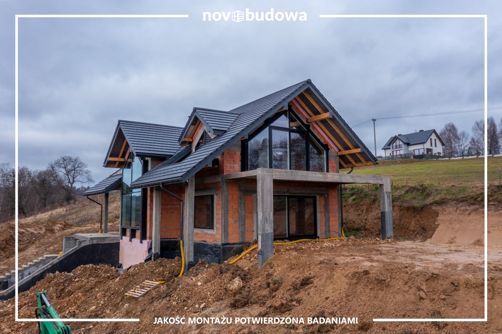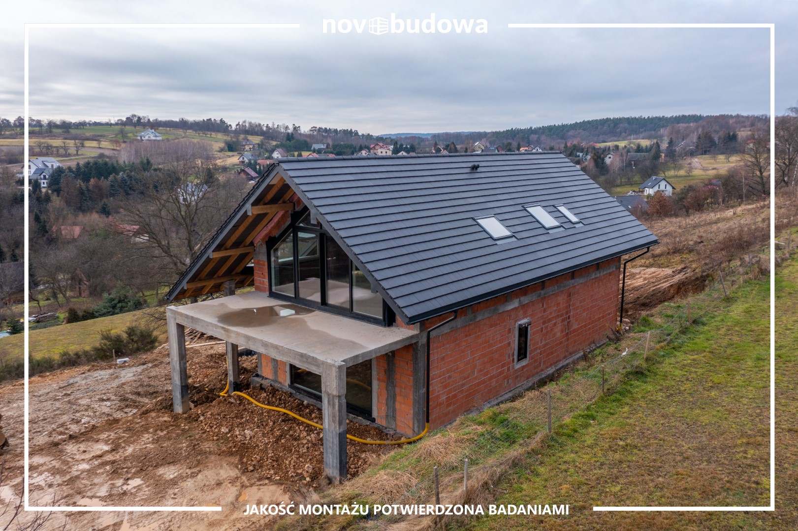 Widowiskowa realizacja w okolicach Krakowa z dużą ilością wielkogabarytowych przeszkleń. Zamontowaliśmy m.in dwie fasady słupowo-ryglowe ALUPROF MB-SR50N HI+, z czego w jednej z nich wpisane zostało okno przesuwne. Reprezentacyjnym sercem domu jest fasada na zboczu z widokiem na góry! Optymalnie doświetlone wnętrza doskonale wpływają na komfort naszego życia, a jeśli do tego za oknem mamy piękne widoki, to przeszklona ściana jest jedynym słusznym wyborem!
