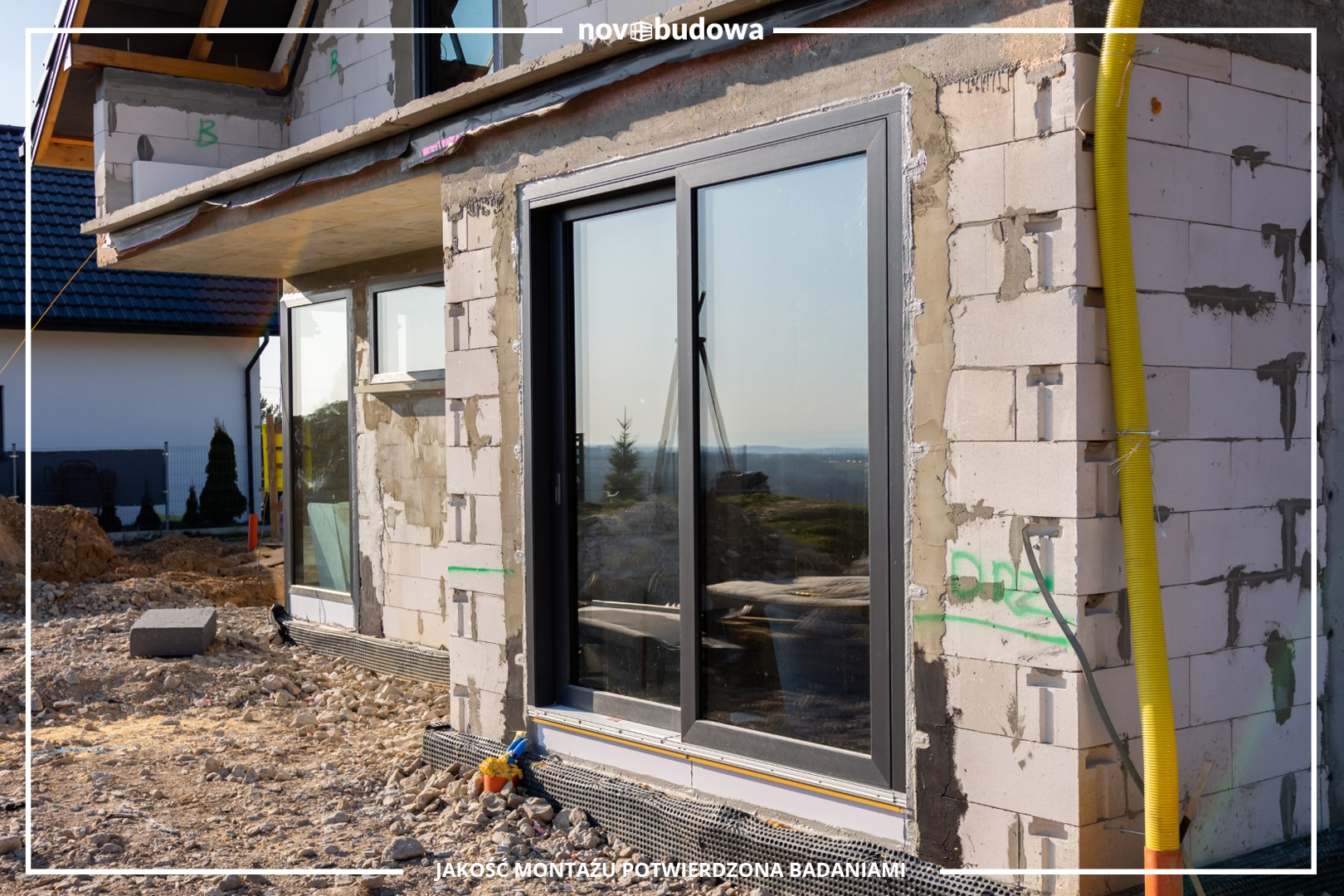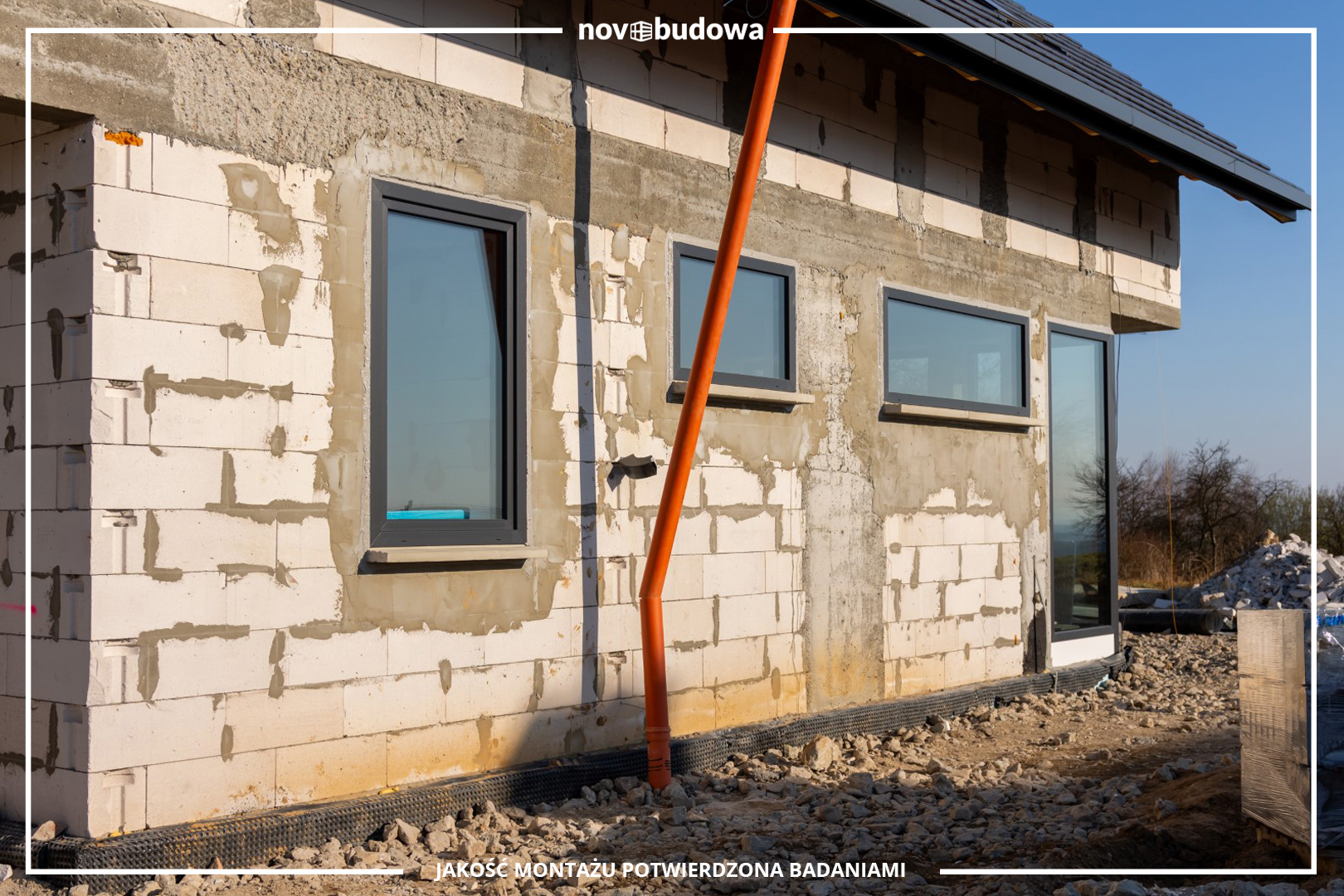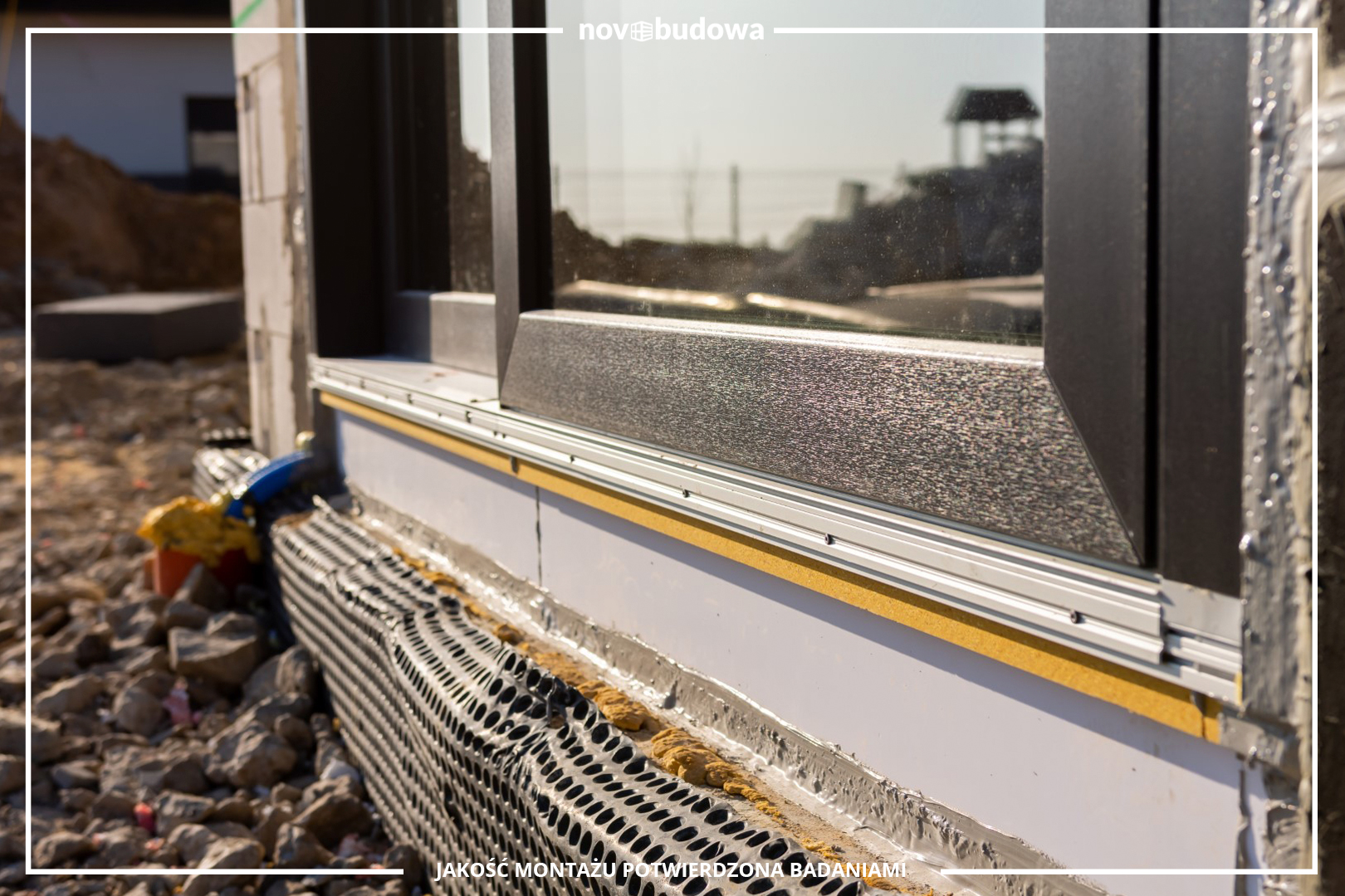 Prawidłwy montaż trójwarstwowy z pisemną gwarancją szczelności z wykorzystaniem mas uszczelniających Soudal SoudaTight Hybrid oraz Illbruck SP925, podwaliny purenitowe do wszystkich okien balkonowych oraz sięgających posadzki, ciepłe termoparapety XPS do wszystkich okien niebalkonowych, prawidłowe mocowanie za pomocą odpowiednio dobranych do materiału pełnego wkrętów ramowych oraz kotew stalowych i kątowników montażowych, zastosowanie klocków podporowych tworzywowych, uszczelnienie hydroizolacyjne za pomocą folii EPDM