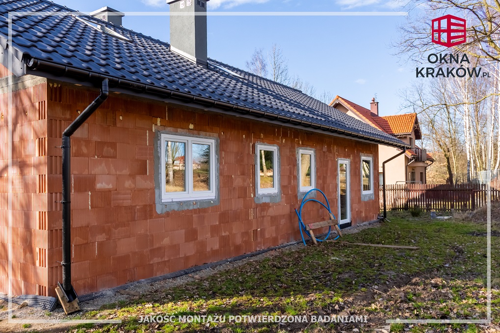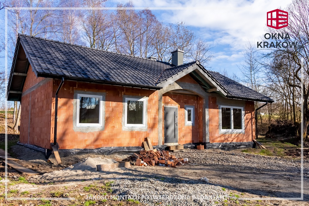 NOVOBUDOWA to nie tylko wymagające techniczne realizacje i wielkogabarytowe przeszklenia. Każdy klient oczekujący bezkompromisowego wykonania i montażu może liczyć na naszą pomoc. W tym przypadku, w Krzęcinie k. Skawiny wykonaliśmy prawidłowy montaż okien w tradycyjnym parterowym domu. Inwestor wybrał okna premium produkcji TEAM-PLAST w klasycznym stylu – obustronnie biały kolor będzie pasować do jasnej elewacji, a półzlicowane skrzydło doda budynkowi elegancji.