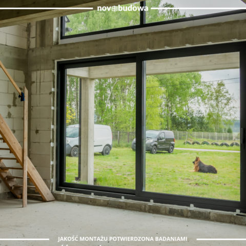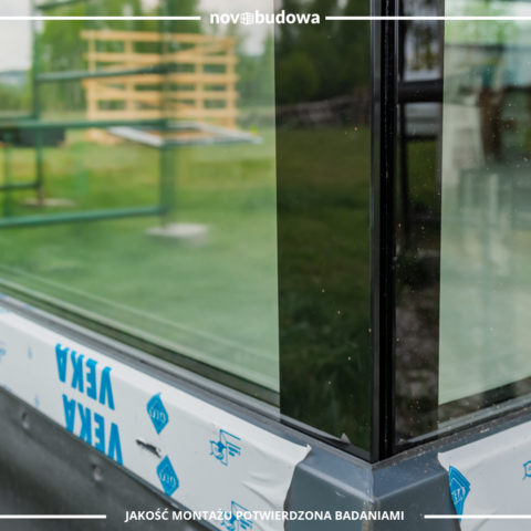Prawidłowy montaż warstwowy z wykorzystaniem mas uszczelniających w płynie – Soudal SoudaTight Hybrid oraz Illbruck SP925. Podwaliny purenitowe zostały wykorzystanie jako podparcie dolne wszystkich okien. Okno narożne Glass-Corner połączone i uszczelnione za pomocą sznurów polietylenowych, uszczelniacza butylowego oraz silikonu.