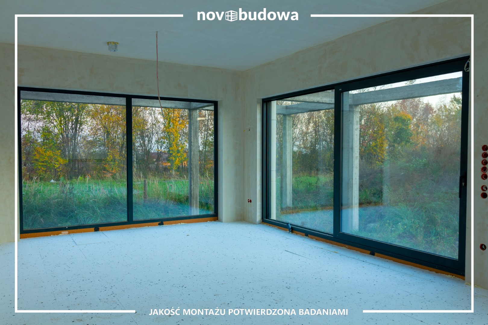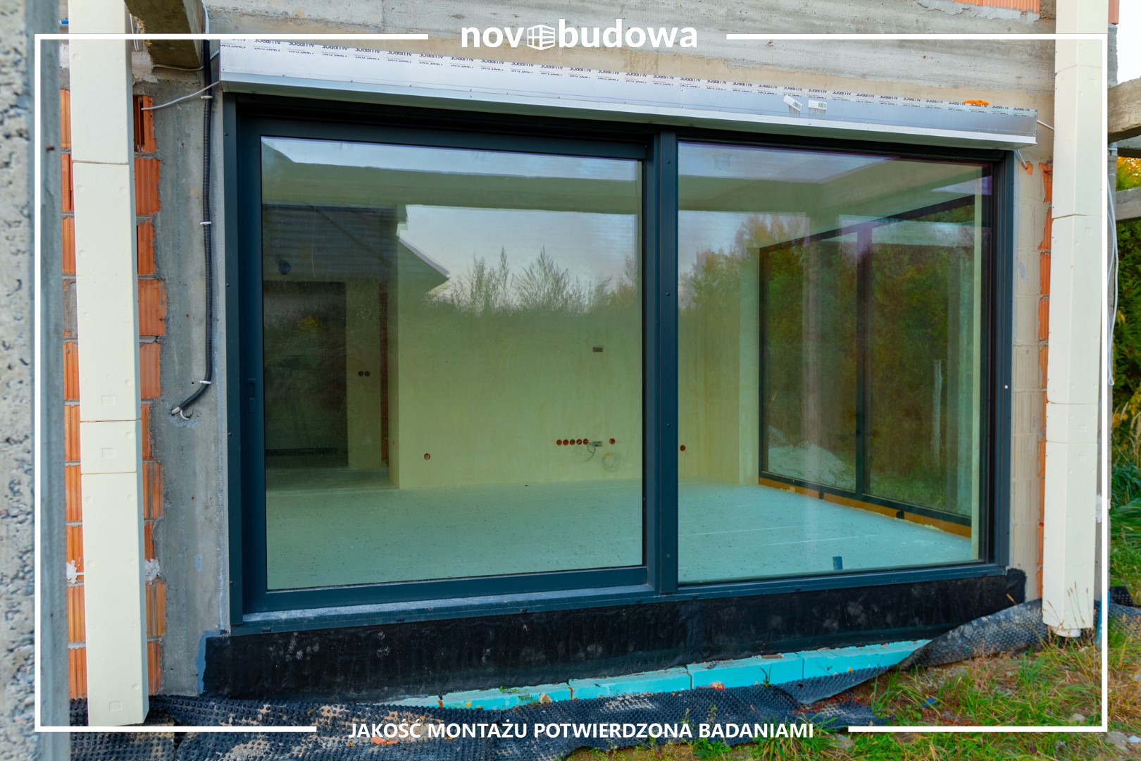 Tradycyjny dom jednorodzinny z nowoczesnymi rozwiązaniami w zakresie stolarki. W tej realizacji zamontowaliśmy kilka tradycyjnych okien, okna balkonowe oraz drzwi przesuwne HST, które w przyszłości będą odpowiadały za wygodne wyjście tarasowe.