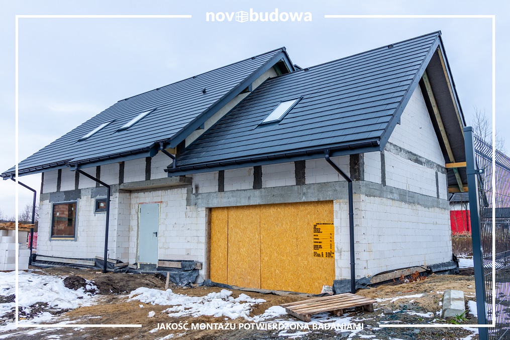 Oprócz tego zamontowaliśmy kilka okien tradycyjnych oraz na piętrze klasyczne okna balkonowe ze stałym słupkiem gdzie w przyszłości zostaną zamontowane tak zwane balkony francuskie.