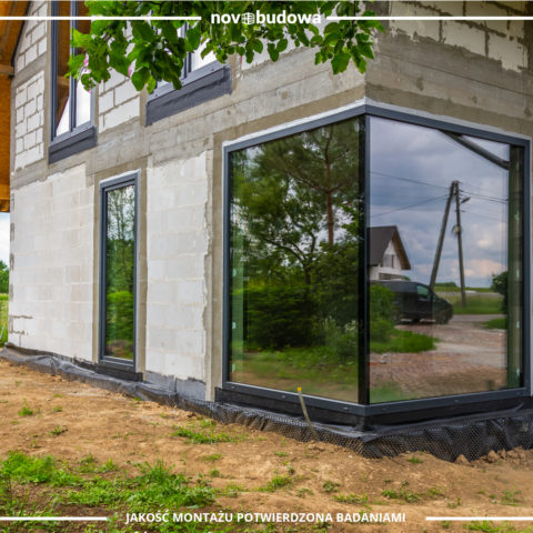 Prezentujemy galerie zdjęć z wykonanego montażu okien w domu jednorodzinnym w okolicy Skawiny. Wybór inwestora padł na okna premium TEAM BALANCE MD w obustronnym kolorze Ciemnoszary Antracyt. Oczywiście nie zabrakło naszego ulubionego rozwiązania czyli Glass Corner! Przy takim nowoczesnym rozwiązaniu szyby łączone są specjalnym spoiwem i w miejscu połączenia jest tylko wąski pasek ciemnego szkła. Z zewnątrz jest on prawie niewidoczny, dzięki czemu uzyskujemy wizualny efekt nieprzerwanego, szklanego połączenia.