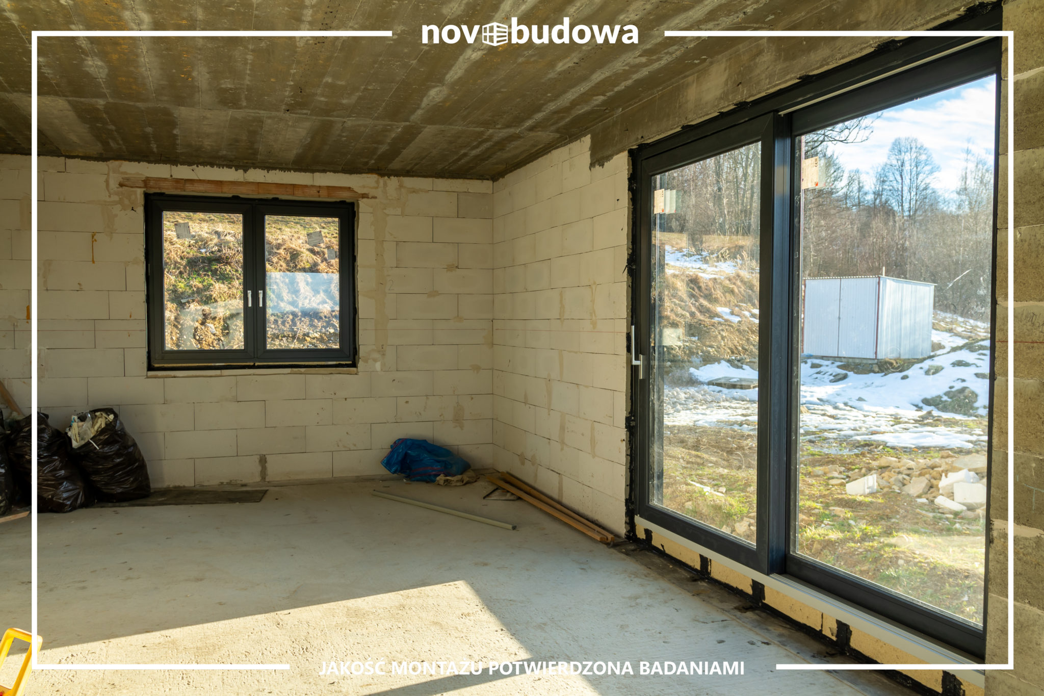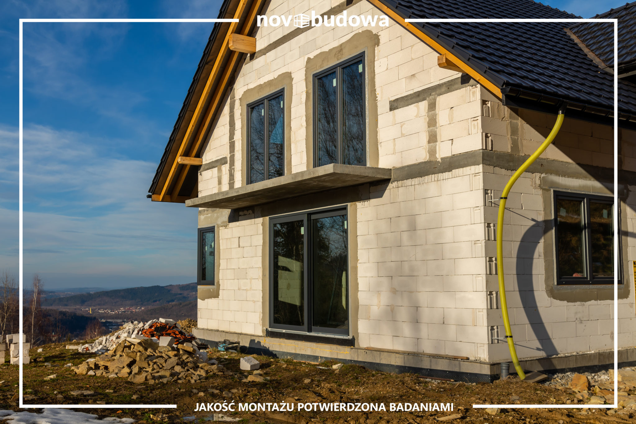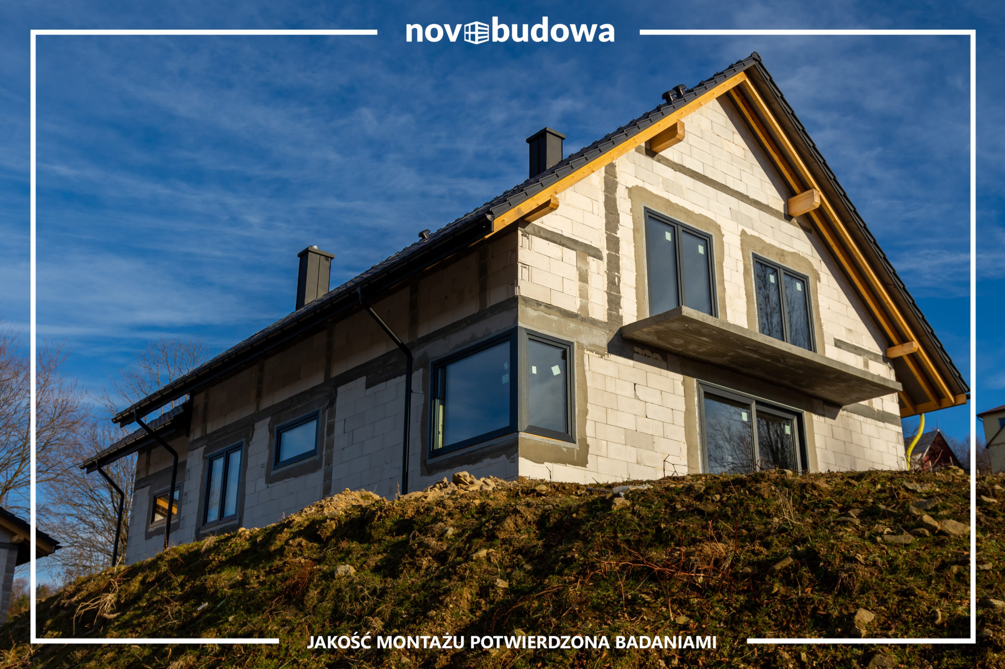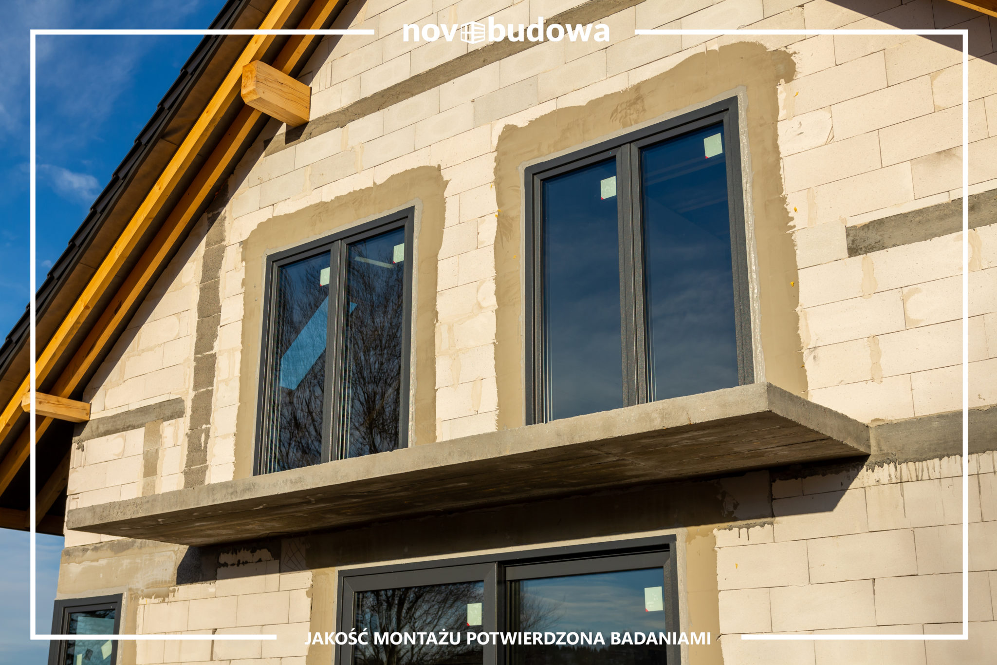 Tradycyjny dom jednorodzinny z nowoczesnymi rozwiązaniami w zakresie stolarki. W tej realizacji zamontowaliśmy kilka tradycyjnych okien, okna balkonowe oraz drzwi przesuwne HST, które w przyszłości będą odpowiadały za wygodne wyjście tarasowe. Inwestor postawił na dwustronny kolor ciemnoszary antracyt (strukturalny).