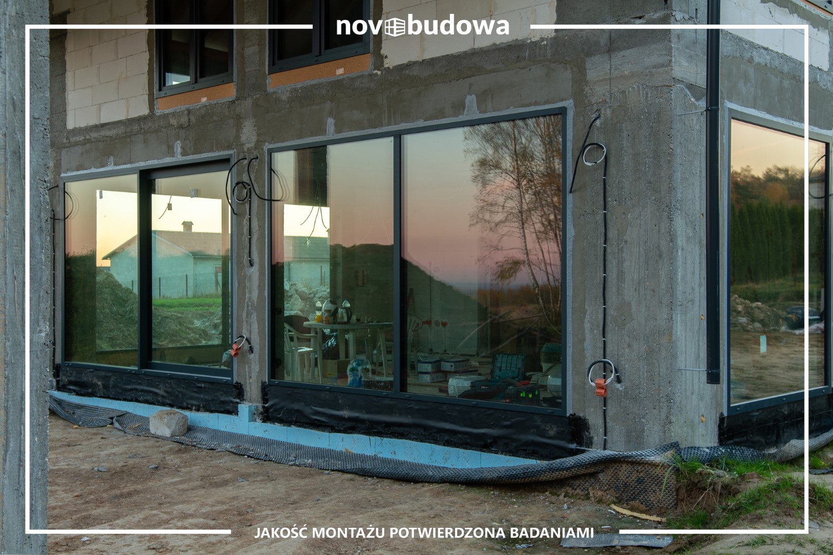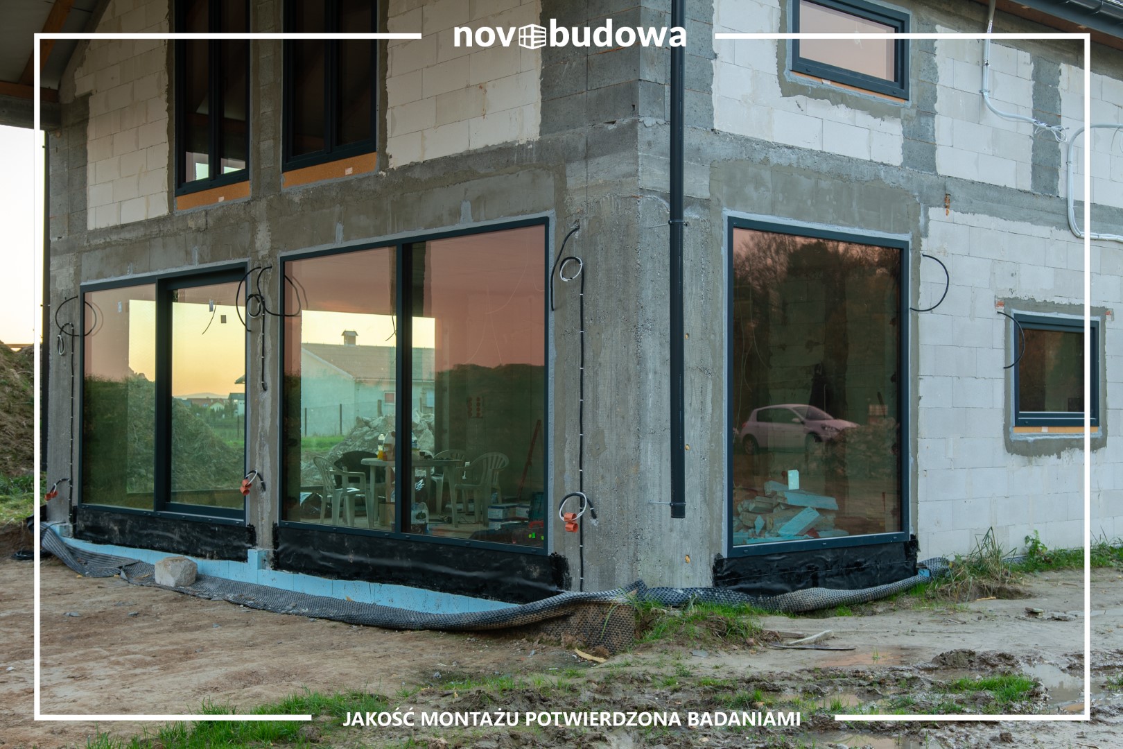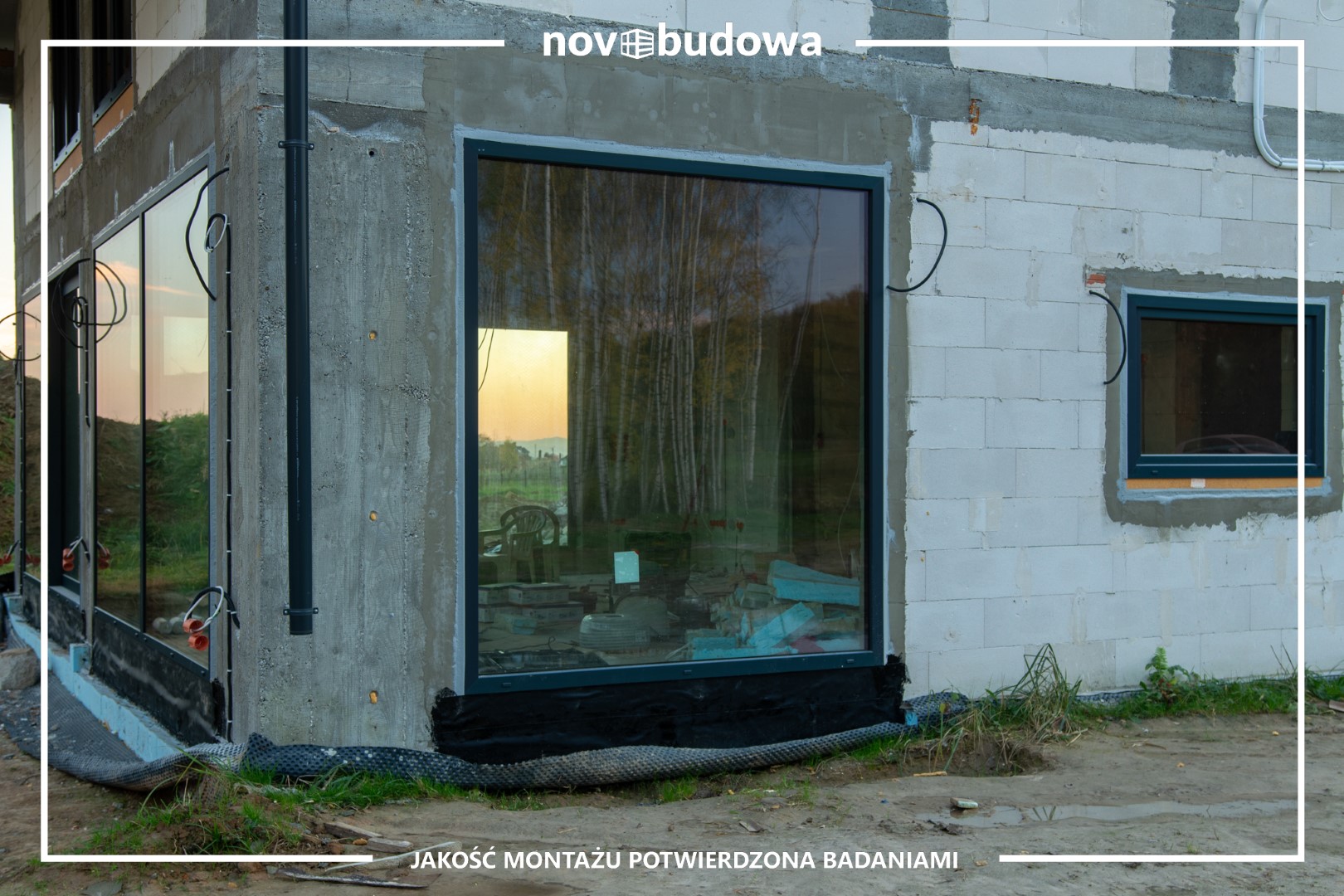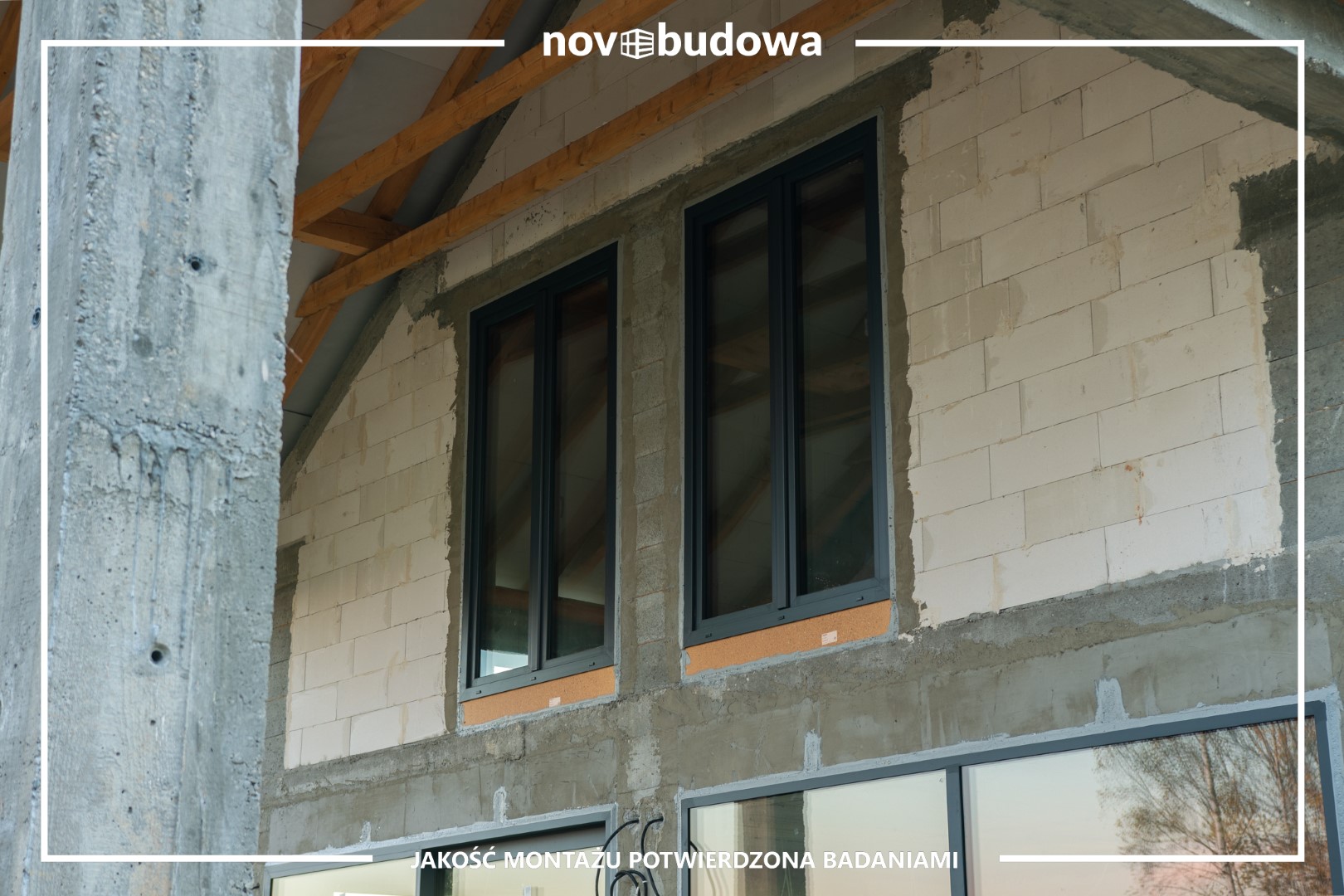 Prawidłowy montaż w obrębie muru, Illbruck SP925 od wewnątrz, Soudal Soudatight Hybrid od zewnątrz, środek pianka PUR, dołem EPDM, wszędzie podwaliny purenitowe – standard