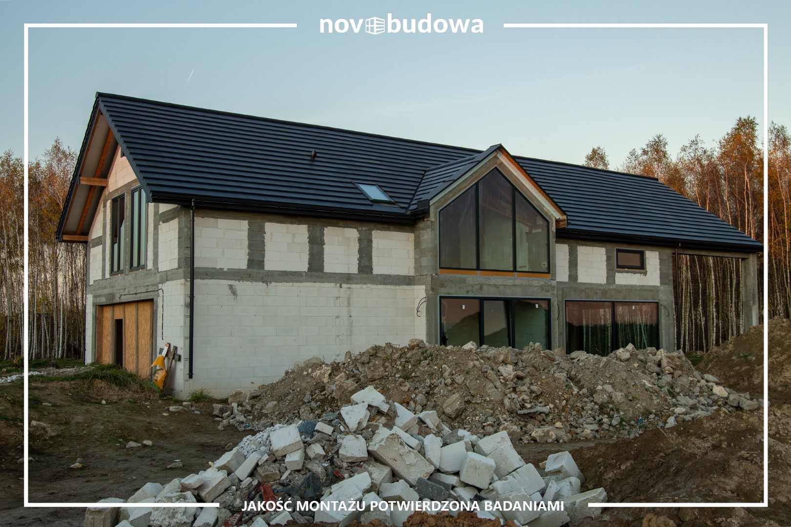 Zrealizowaliśmy również montaż okna HST z cienkim słupkiem środkowym oraz pięknego skośnego przeszklenia! Zobaczcie sami.